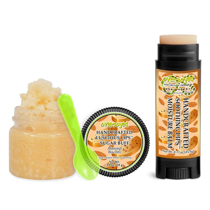 Almond Biscotti Soothing & Luscious Lips by OverSoyed Exfoliator & Chapped Lip Repair Lip Care Combo | Artisan Handcrafted to Order Anise Ginger Caramel Flavored Exfoliating Sugar Lip Scrub & Lip Moisturizer Balm Gift Set