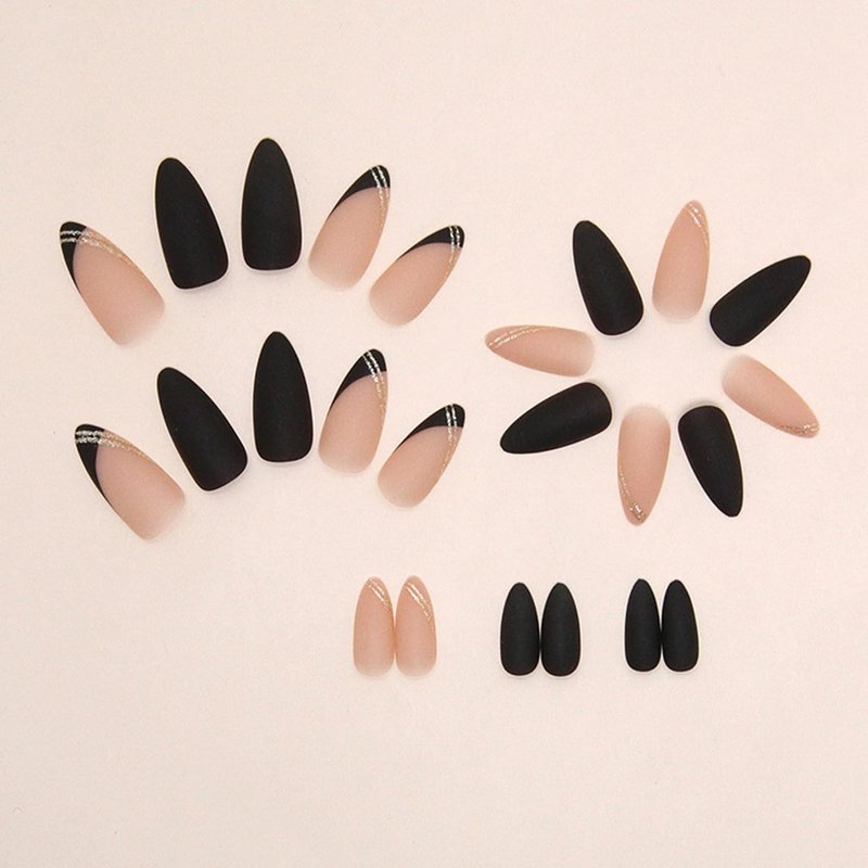 24 Pcs Black Almond Design Press on Nails Long Oval Shape Fake Nails Set for Women Manicure Decorations