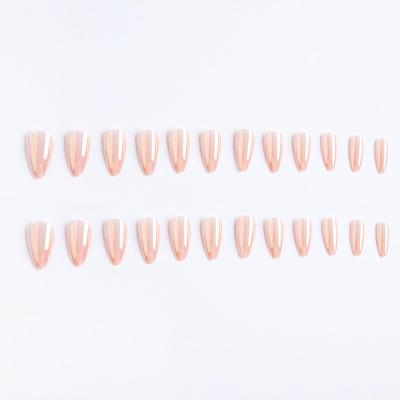 - 【Almond Press on Nails】There are 24 nude pink chrome press on nails in one pack,Beautiful and cute short press on nails almond false nails comes with has 12 different sizes.Brush the nail with a coat of polish if you want it to last longer