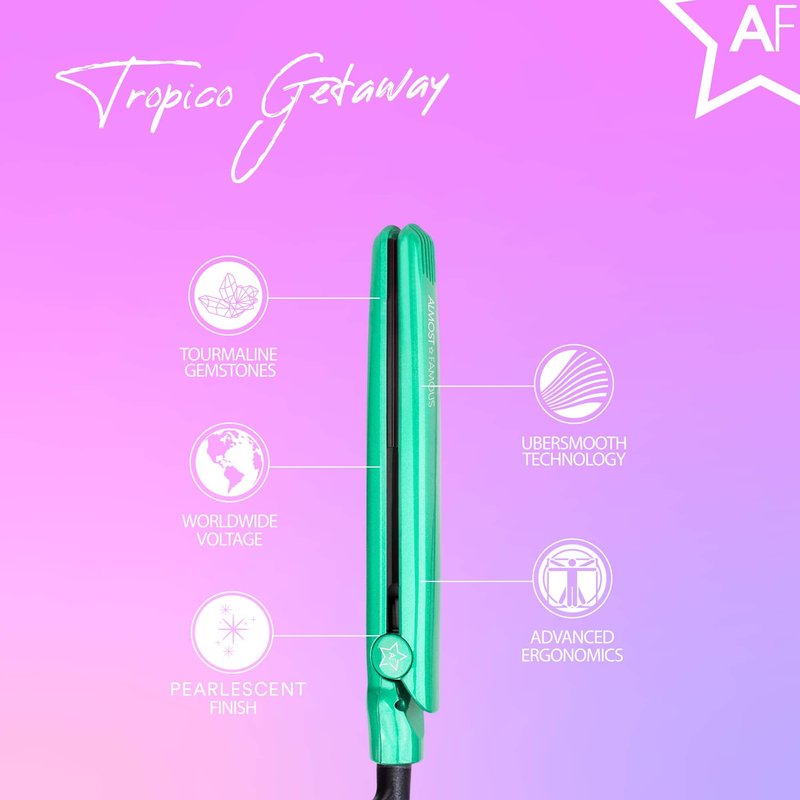 Almost Famous Tropico Getaway 0.5 inches Mini Tourmaline & Ceramic Hair Straightener Flat Iron with Stunning Travel Bag with Set Temperature, All Hairstyles (Watermellow)