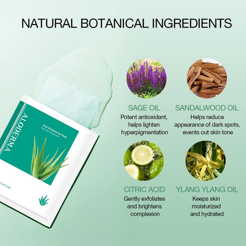 - Natural Skin Care: Pamper yourself with a luxurious, self-care experience free of harsh chemicals and artificial scents. Our brightening aloe face mask is one of the options available in our sheet masks collection - all designed to nourish, hydrate, purify and beautify your skin!