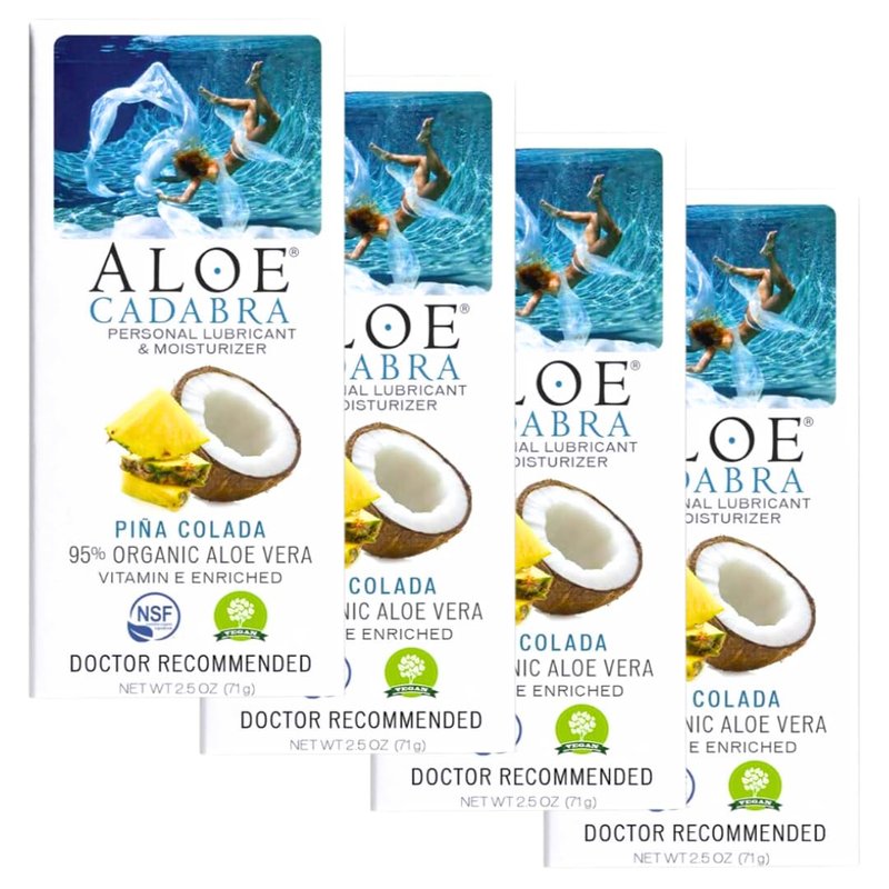 Aloe Cadabra Flavored Personal Lubricant and Vaginal Moisturizer, Organic Edible Aloe Lube for Men, Women and Couples, Non-Staining, pH Balanced, Toy Compatible (Pina Colada, 2.5 Ounces, 4 Pack)