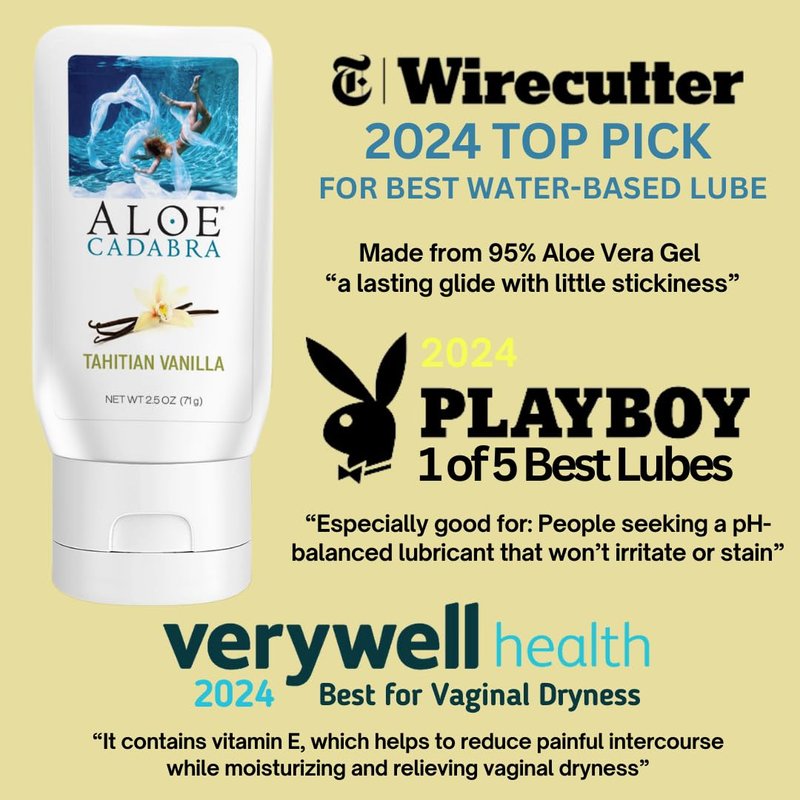 Aloe Cadabra Flavored Personal Lubricant and Vaginal Moisturizer, Organic Edible Aloe Lube for Men, Women and Couples, Non-Staining, pH Balanced, Toy Compatible (Tahitian Vanilla, 2.5 Ounces, 1 Pack)