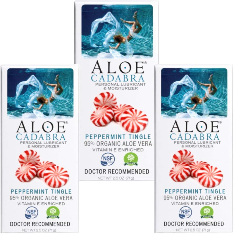 Aloe Cadabra Flavored Personal Lubricant, Best Natural Lube Gel for Her, Him & Couples, Peppermint, 2.5 oz (Pack of 3)