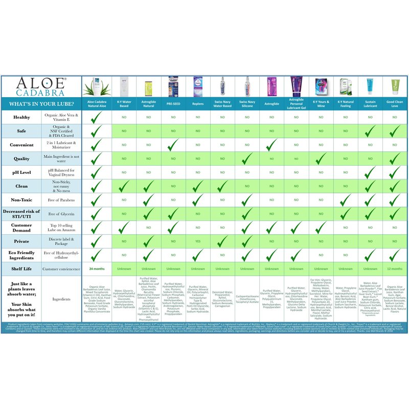 - Aloe Cadabra's Natural Aloe Lubricant is a premium water-based formula made to mimic your body's natural lubrication while moisturizing and invigorating a natural and lasting experience.