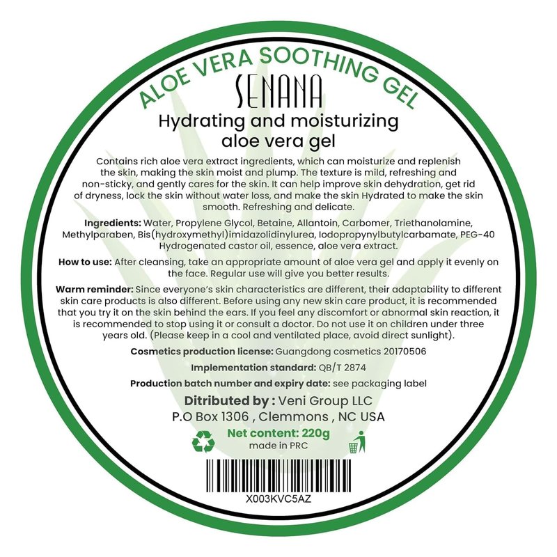 - SENANA Pure Aloe Gel works to revive both the outermost layer and the underlying depths of your skin. Packed with more than 75 essential vitamins and antioxidants, our mild and weightless formula effectively alleviates itching and irritation, offering a gentle and calming solution.