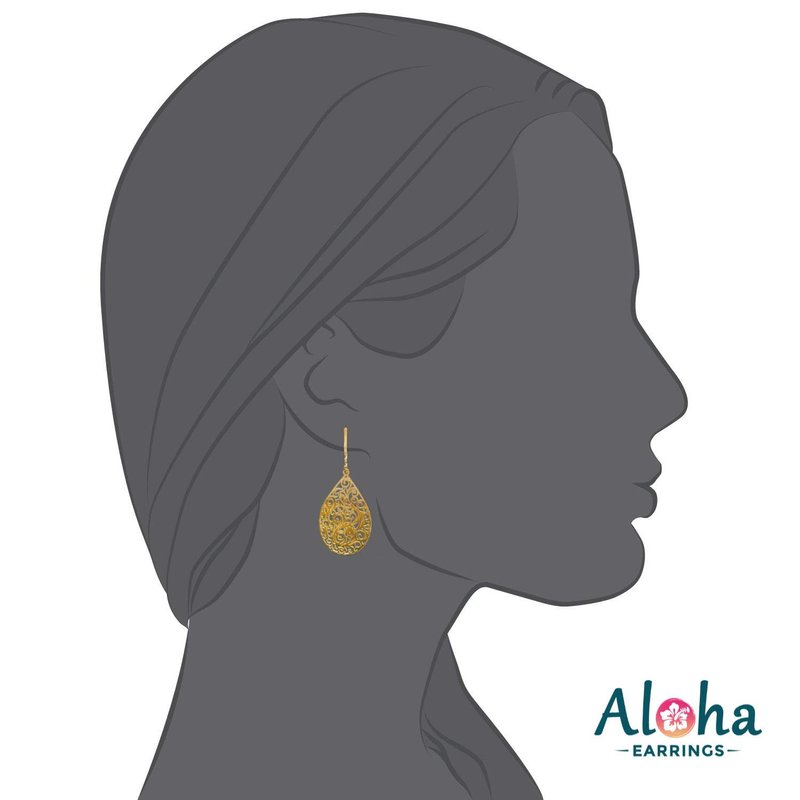 Aloha Earrings - Victorian Filigree Clip On Earrings for Women - Non Pierced Dangle Fashion Jewelry (Small Filigree- Gold Tone)