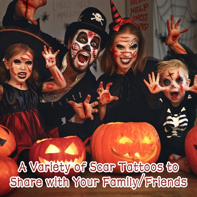 - Unique Large Size Scars Tattoos Included: Except for regular small size halloween tattoos, there are unique designed larger tattoos included in this set, making them perfect for special events or switching up your look
