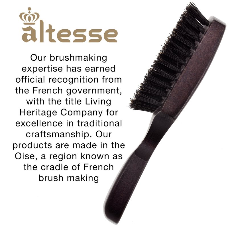 Altesse 1318P Boar Bristle Hair Brush for Men Beard and Mustache Beard Grooming Kit Dark Beechwood Hard Wave Brush for Men with 8 Rows of 100% Firm Natural Bristle Hair Brush Club Handmade in France