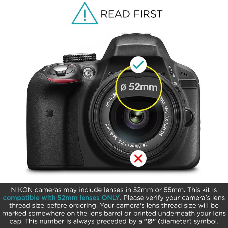 - NOTE: These Altura Photo filters are compatible with all 52mm lenses. Please verify your camera's lens thread size before ordering. Your camera's lens thread size will be marked somewhere on the lens barrel or printed underneath your lens cap. This number is always preceded by a "Ø" (diameter) symbol. For example: Ø52 = 52mm lens thread size.