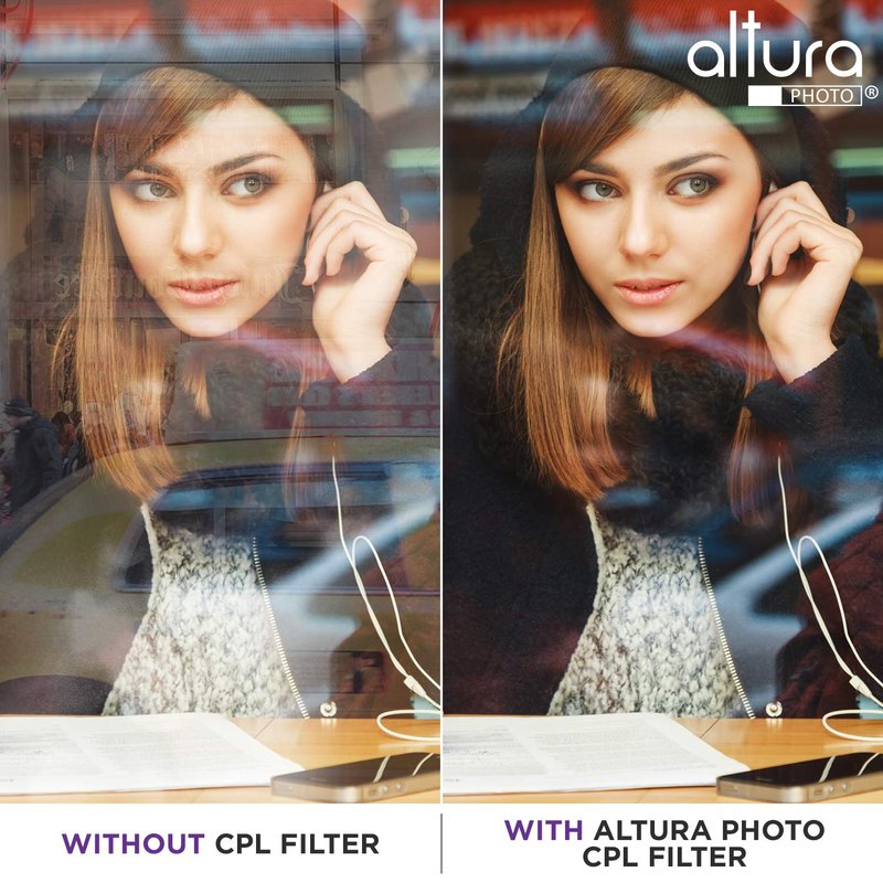 - Circular Polarizing filters remove unwanted reflections from non-metallic surfaces such as glass or water. Take richer scenic shots and notice improved clarity in distant objects by cutting through haze and increasing color saturation. Simply rotate the front ring to adjust the desired effect.