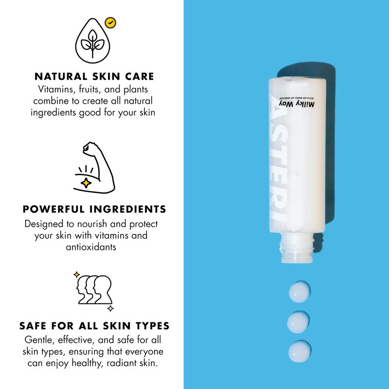 - Gentle on Skin, Tough on Impurities - Our Milky Way Micellar Cleanser easily removes even the most stubborn makeup, including waterproof formulas, without the need for harsh scrubbing. Its gentle action ensures that your skin remains calm all throughout, making it ideal for all skin types.