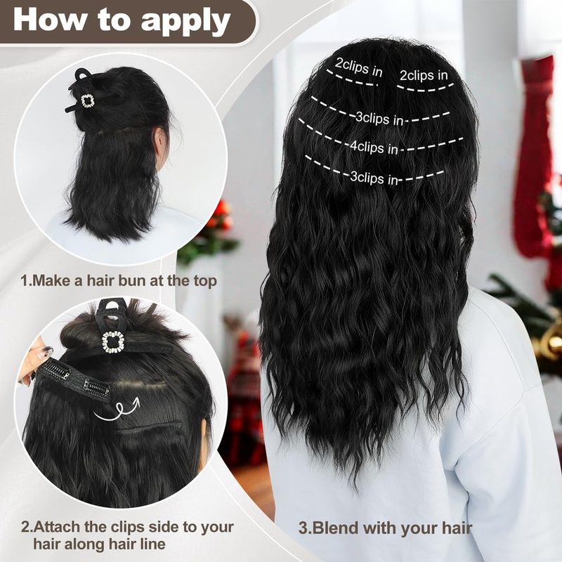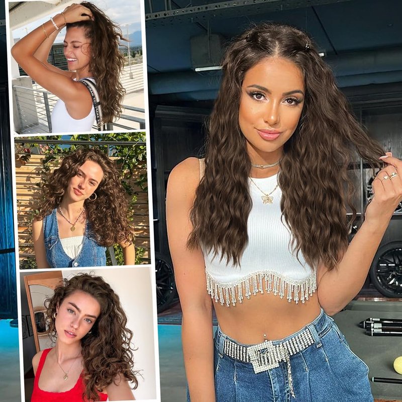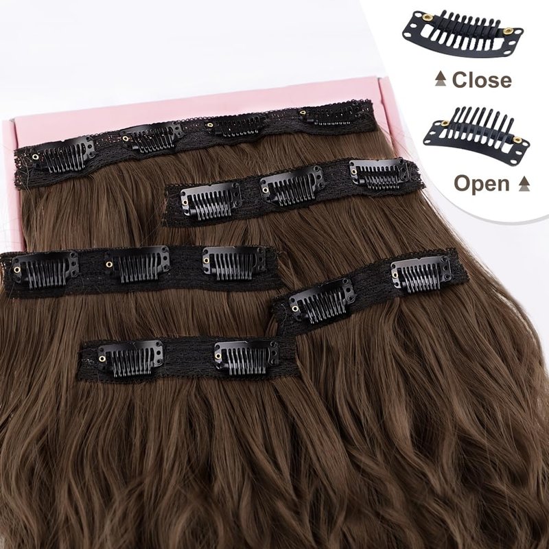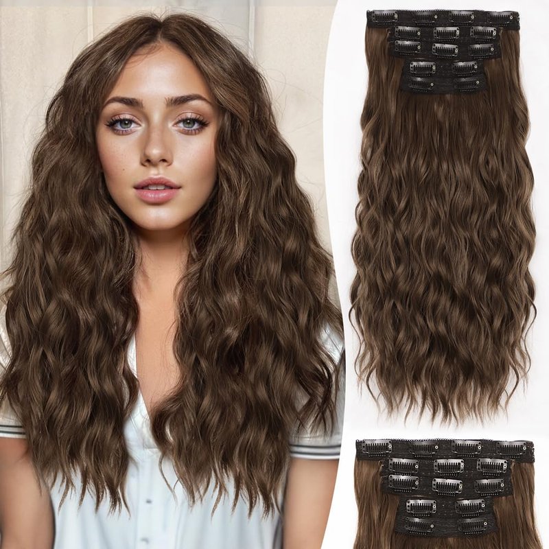 ALXNAN Clip in Hair Extensions, 16" Brown Thick Long Mermaid Waves Hair Extensions Invisible Lace Weft Soft Hairpieces For Women
