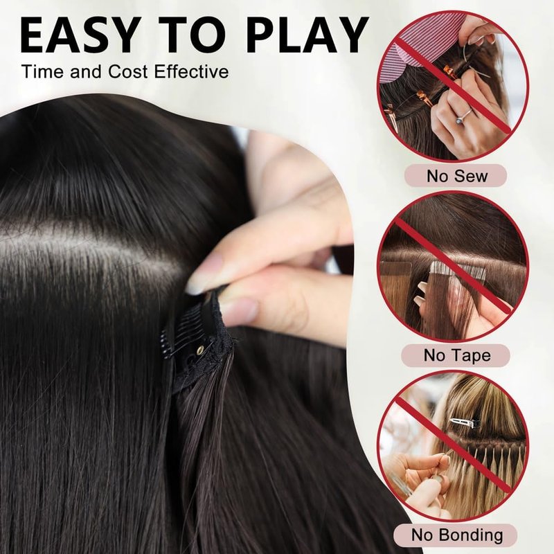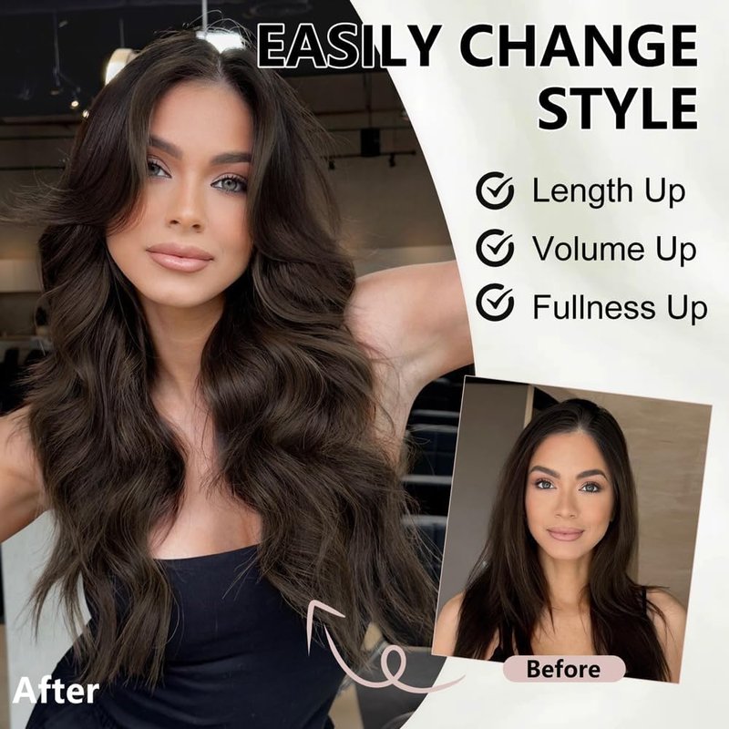 - ❤【Advantages】:Our hair extension is safer and more comfortable. It uses BB clips,strong & secure,no damage the scalp,quick and easy to wear.You can get the Salon brunette hair look at home.