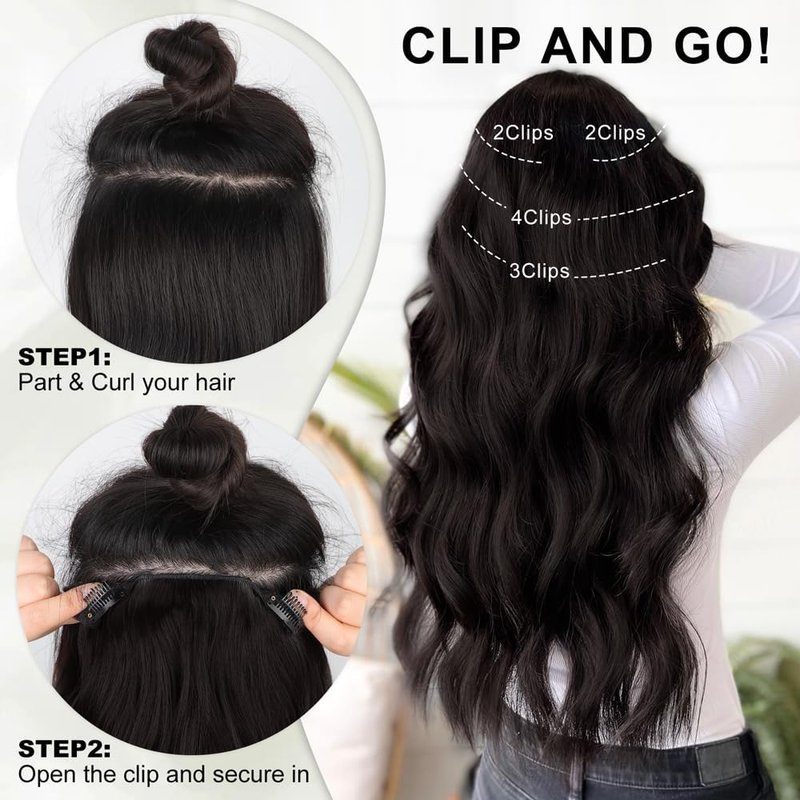 - ❤【Specification】: Each pack includes: About 20 inches,200g; 4 Separate Pieces for full head set.2PCS of 2 clips(5"wide),1PC of 3 clips(6"wide),1PC of 4 clips(7"wide).4pcs set extensions can be adjusted and worn more comfortably to fit your head better.