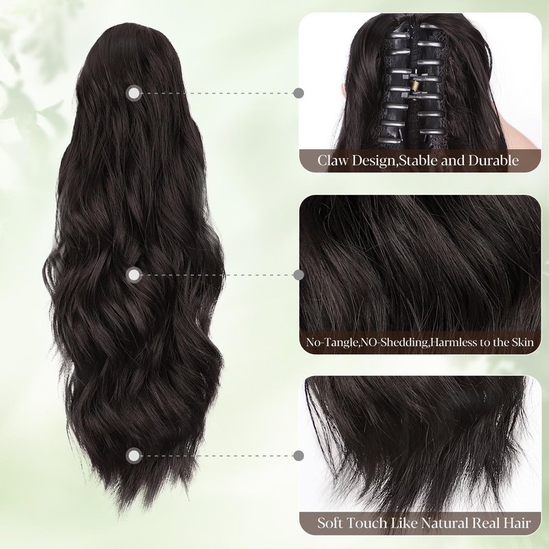 ALXNAN Ponytail Extension,16 Inch Claw Ponytail Hair Extensions for Women,Claw Clip in Long Wavy Synthetic Black Brown Ponytail Extension for Daily Use.