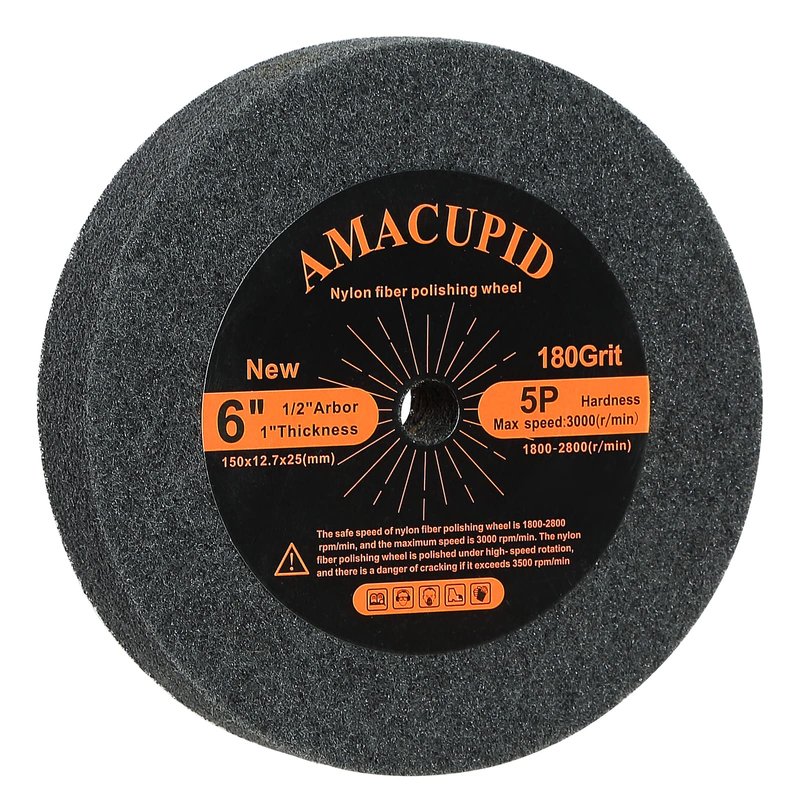 AmaCupid Nylon Fiber Brushed Buffing Wheels 6 Inch 5P Hardness. for Bench Grinder Buffing Machine Polishing Copper. 180 Grit, 1/2 inch Arbor, 1 inch Thickness