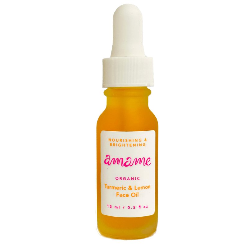 Amame USDA Organic Certified Turmeric + Lemon Face Oil | Glowing + Nourishing Facial Oil for Women + Men with Organic Rosehip Oil + Jojoba Oil | 0.5oz