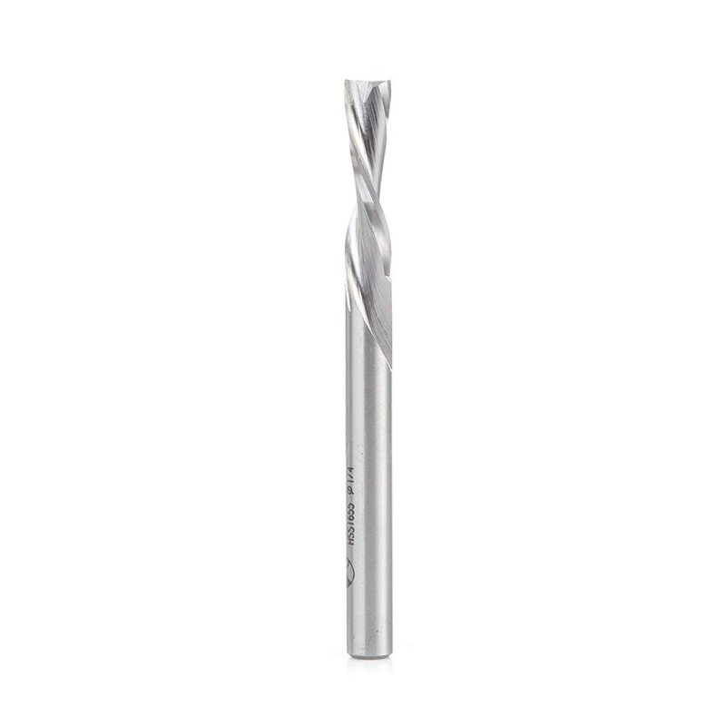 Amana Tool HSS1655 Double Flute Spiral Router Bits Metal Aluminum Cutting 1/4 D x 1 x 1/4 Inch Shank Down-Cut Router Bit High Speed Steel