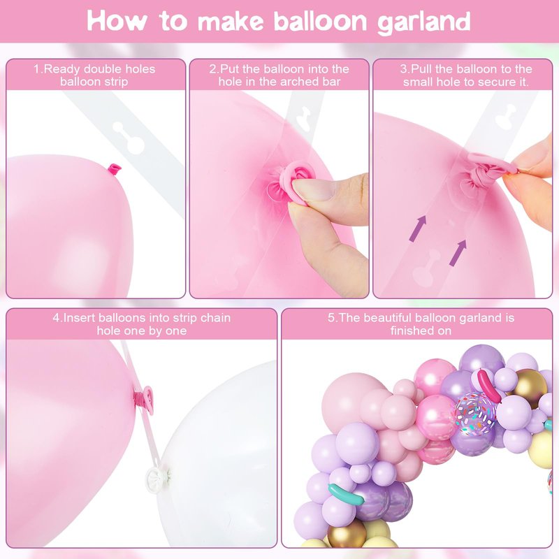 - Easy To Assemble - This donut birthday party decorations kit with 4 balloon accessories, including balloon arch, balloon glue points, tying tool and ribbon. These balloon tools can release your hands and will help you make a Dreamy donut balloon arch easier and faster.