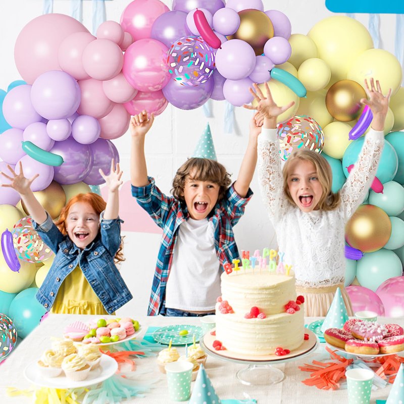 - Premium Donut Grow Up Party Supplies - Our donut balloon garland arch kit is made of natural latex, non-toxic, thick, non-breakable, safe for kids, refillable with air, helium. The combination of various colors of pastle balloons, ice cream, and donut balloons is full of cute and romantic atmosphere. Our pastel balloon garland kit will meet your different needs.