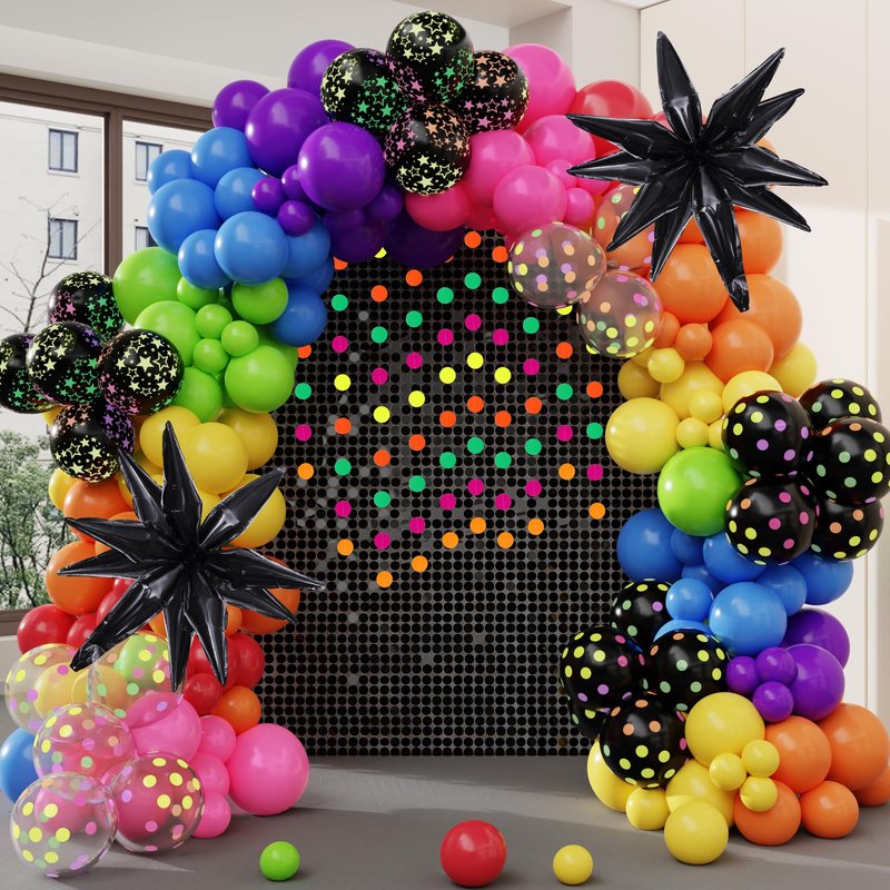 - Used In Variety Occasions: The rainbow party decorations will be very popular at your party; This neon party decorations set is versatile and ideal for various occasions; It's great for black light party decorations, fluorescent party, birthday party, back to 80s 90s, holiday carnival, graduation, anniversary, wedding, festival celebrations, baby showers, school activities; Our disco balloon arch kit serves as a fantastic backdrop and prop, enhancing the festive atmosphere of your party