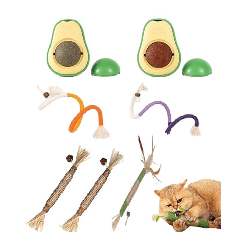 AMANGSCO 7 Packs Catnip Toys for Cats, Cat Chew Toy Silvervine Sticks for Cats, Avocado Catnip Balls Kitten Treats, Sisal Rope Cat Teething Toys, Cat Grass Teething Stick Kitten Toys