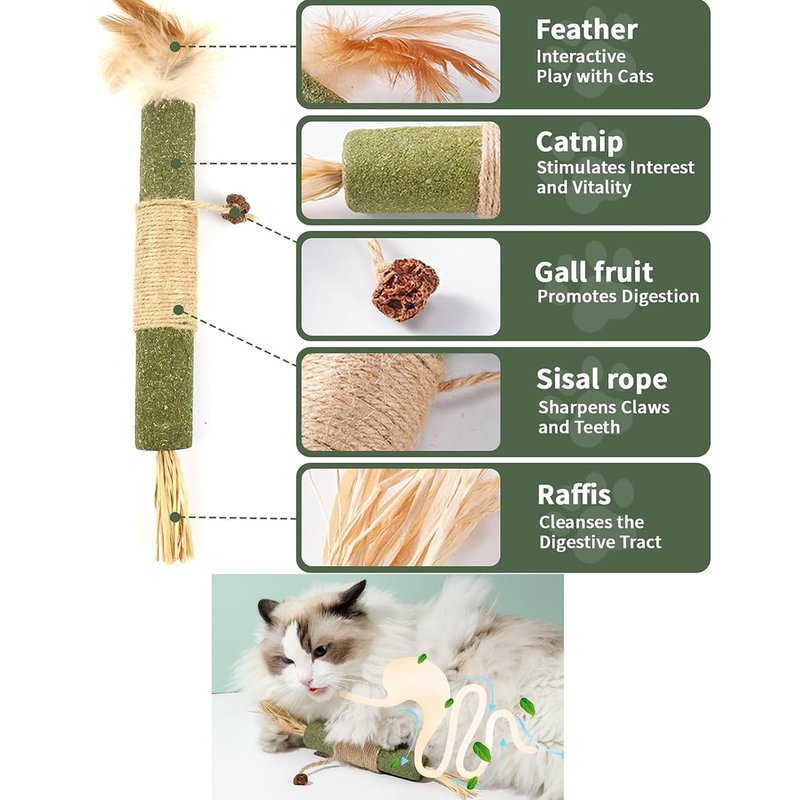 - 【Cat Grass Teething Stick】The natural sisal rope and raffia are bite resistant, which can help cats clean teeth, eliminate plaque and tartar, keep fresh breath , and improve oral hygiene. They also help cats moving in exercise.