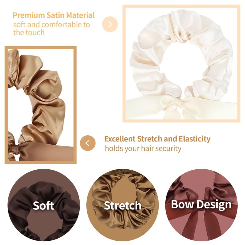 - Chic Bow Design: Every satin scrunch with a bow of the same color, make the hair bow scrunchies look more elegant, you can choose to remove the bow, no matter what kind of wear can make you look more charming and beautiful.