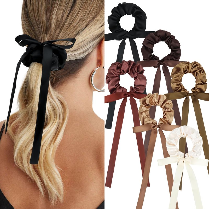 - Classic Colors: You will get 6 packs neutral colors hair ties with bow which are very classic. The hair bow scrunchies are versatile, they come with a detachable decorative ribbon, The ribbon can be removed and tied into a bow, or worn on the hand and tied to a bag as a decoration.