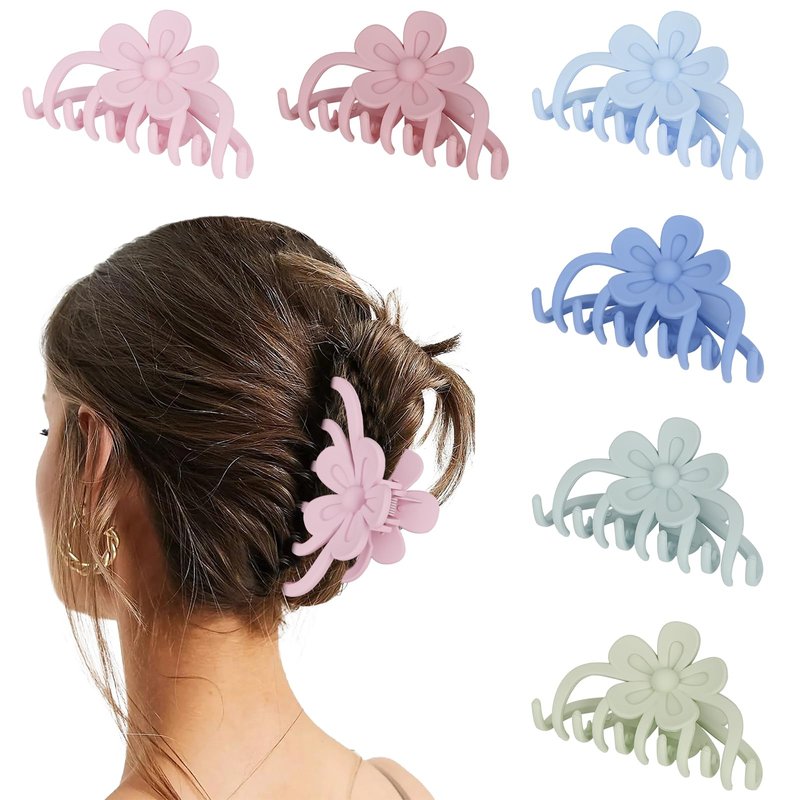 Amariver 6PCS Flower Hair Claw Clips for Women Matte Claw Clips Flower Hair Clips Non-slip Flower Hair Clip for Thick Thin Hair Strong Hold Hair Claws Hair Accessories for Women Girls