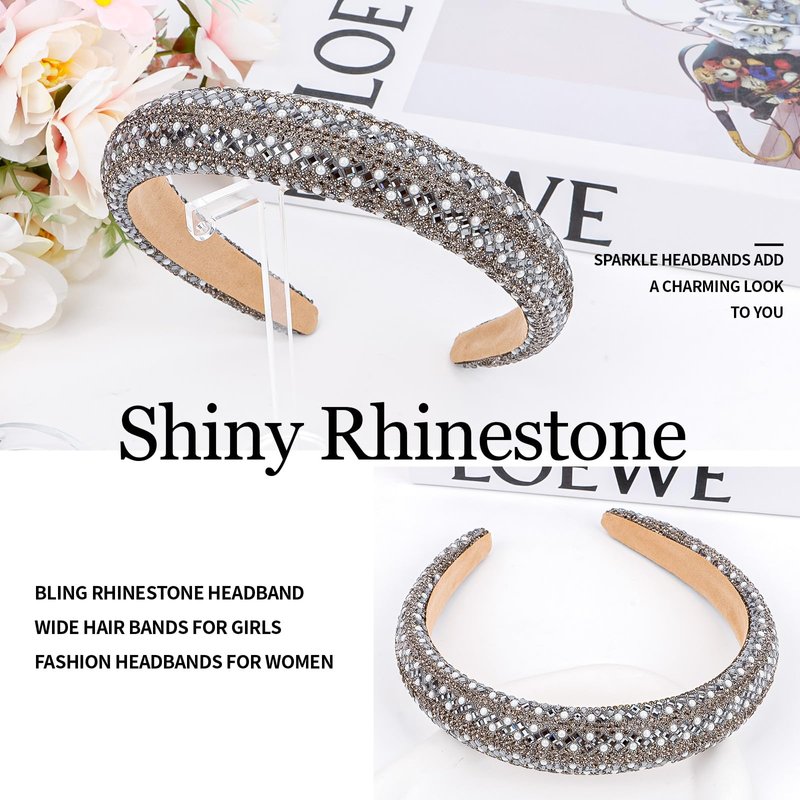 Amariver Gray Rhinestones Headbands for Women Sparkly Padded Head Band Glitter Pearl Hair Band Bling Crystal Headband Diamonds Headbands Non-slip Fancy Hair Accessories for Women Girls