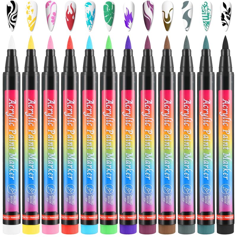 Amaxiu 12 Colors Nail Art Pens Set, Waterproof Nail Polish Pens Quick Dry Acrylic Nail Art Painting Pen with Soft Bristles Pen Nib Nail Graffiti Dotting Drawing Pen Liner Brush for Nail Design Beauty