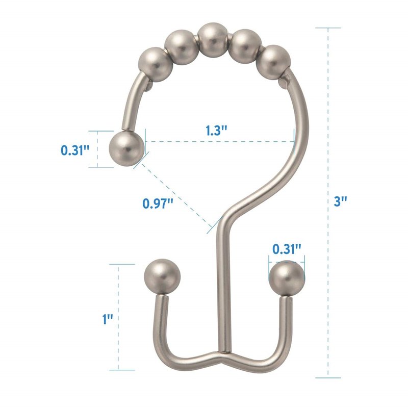 - Set of 12 shower hooks: Sold in sets of 12 for standard shower curtain installation.