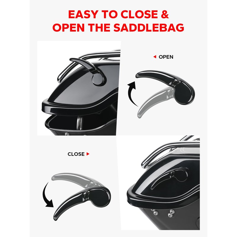 - {Easy to Install} Comes with the installation hardware, installation is a breeze. The saddle bag latches offer motorcycle riders a practical solution to upgrade their riding experience.