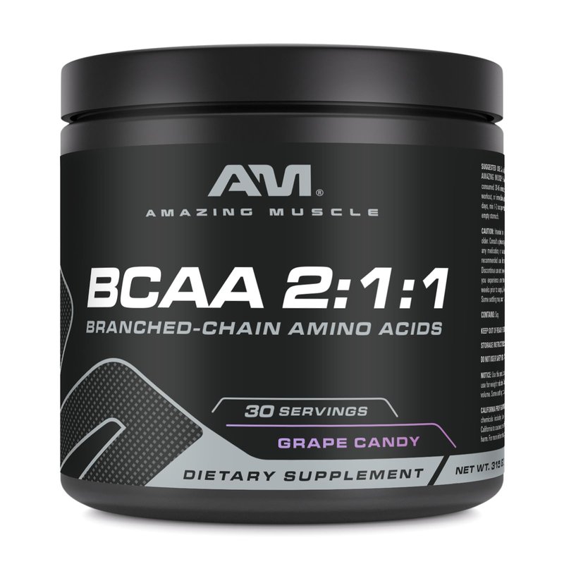 Amazing Muscle BCAA 2:1:1 | 30 Servings | Natural Flavor | 315 Grams Powder | Branched Chain Amino Acids Supplement | Made in USA (30 Servings, Grape Candy)