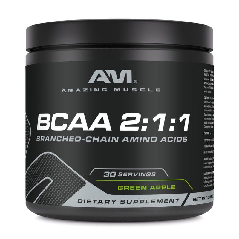 Amazing Muscle BCAA 2:1:1 | 30 Servings | Natural Flavor | 315 Grams Powder | Branched Chain Amino Acids Supplement | Made in USA (30 Servings, Green Apple)