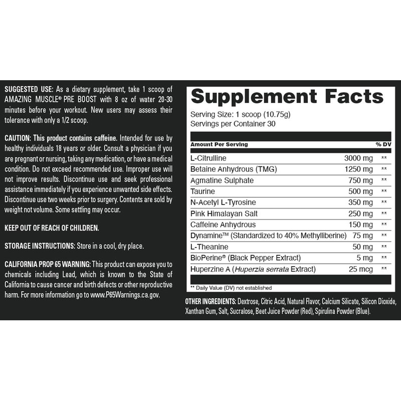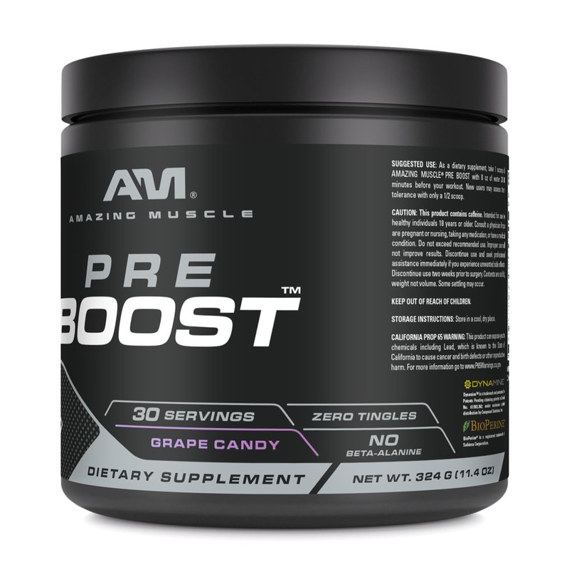 Amazing Muscle Pre Boost | 30 Servings | 324 Grams Powder | Pre Workout Supplement | Made in USA (30 Servings, Natural Grape Candy)