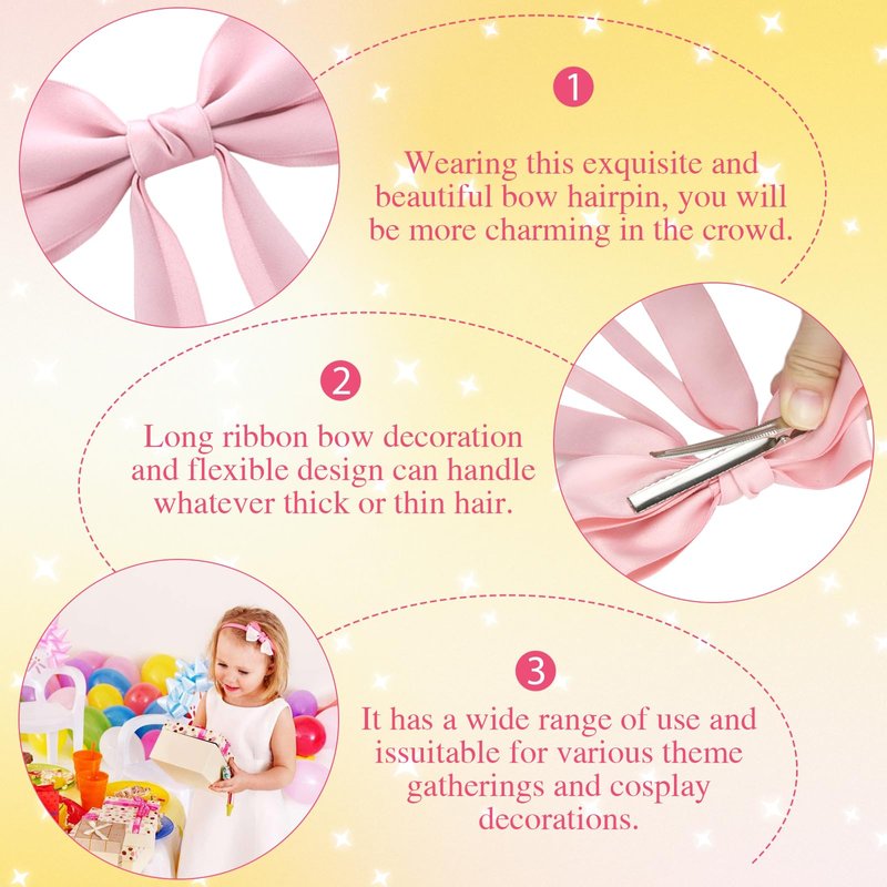- Used Widely: The long tail design of a ribbon bow, with braids, ponytails and other shapes will make the hairstyle more fluffy, can be used for special festivals such as birthdays, parties, cosplay, performances (Tip: if it is to be used in shows, in order to increase the bow firmness, add bobby pins under it).