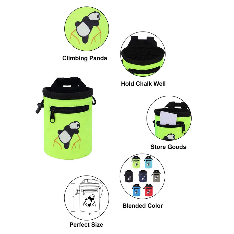 AMC Climbing Chalk Bag with Embroidery/Front Pocket/Belt (Fluorescent Green, 6 inches x 4 inches)