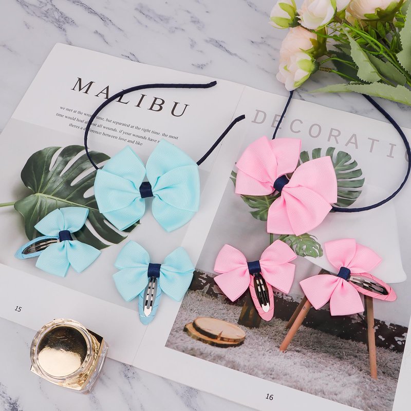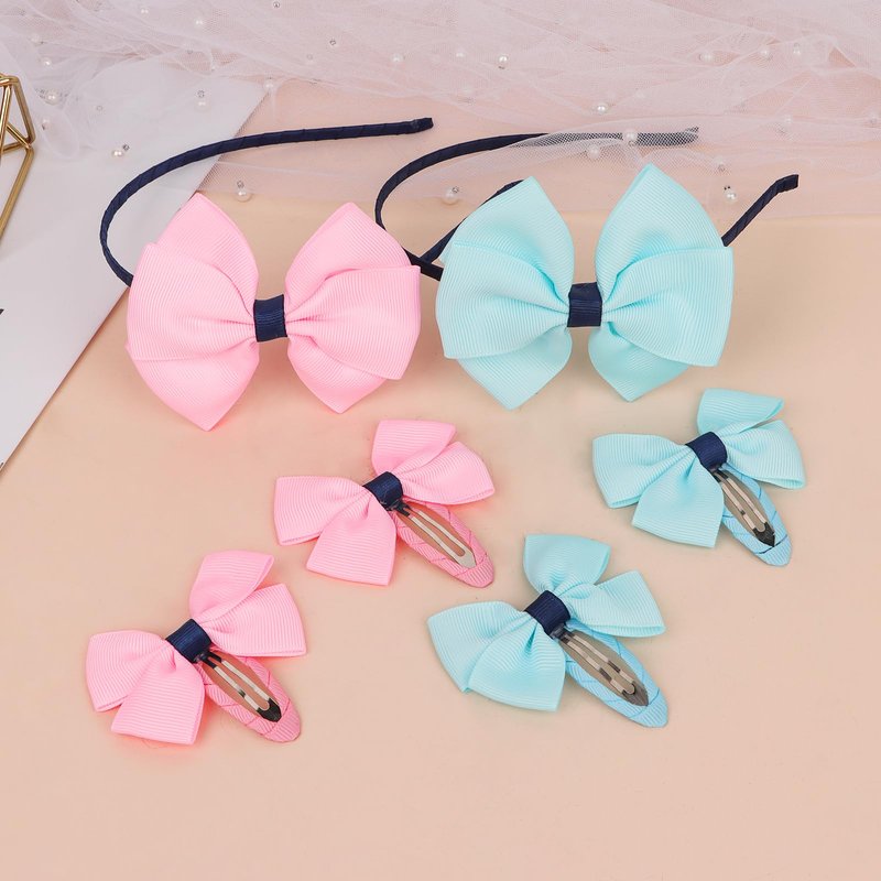 AMCAMI elegant bow headband for women,pefect women hairbands with delicate bow hair clips,totally 6 pcs headband and hair clips set,different colors for your to choose,pink and light blue headbands and hair clips,different styles suitable for different outfits of yours.