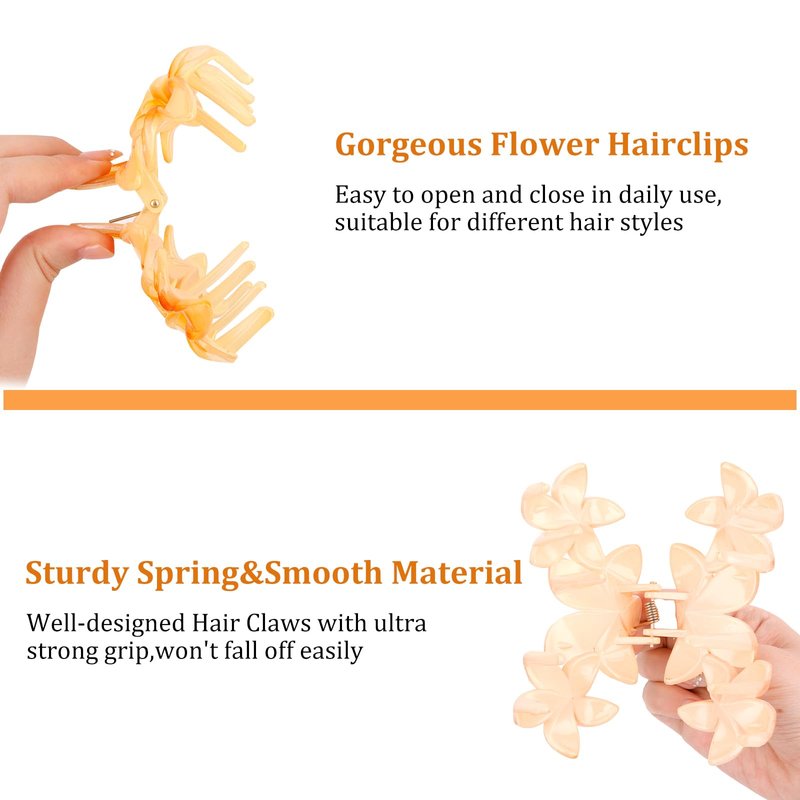 AMCAMI 4 PCS hair clips for women,different brilliant candy colors assure its attractivesness,and what's more,these women hair accessories can be used in different scenes,even you are going shopping,doing exercises,working,travelling and doing picnic,flower hair clips never frustrate the buyers.claw clips for thick hair and thin hair,you can come and pick whatever kind of hair is