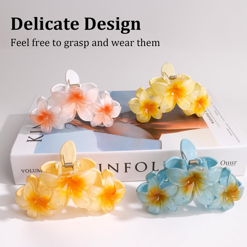 - Trendy Design: Our delicate flower hair clips for women has a quite innovative design that draws inspiration from ideas of beautiful flowers and blends with traditional hair clips, wonderful shape is extremely delicate, like real flower petals set on your hair as a decoration, and comes in 4 bright colors thus our flower hairclaws can definately attract their eyesight weraing them.