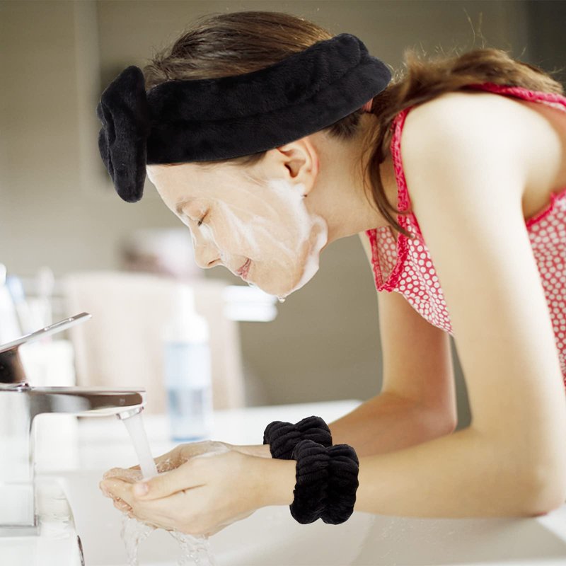- [Skincare Headband With Bow] The adorable bowknot is designed on the top of the makeup headband, making you extra sweet and cute. The fluffy headband keeps your hair in place while you cleanse, providing comfort during your skin care routine. With enough elasticity to fit the majority of people's heads.