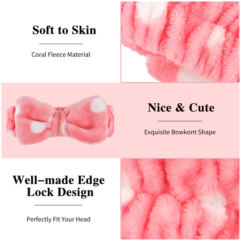 - [Skincare Headband With Bow] The adorable bowknot is designed on the top of the makeup headband, making you extra sweet and cute. The fluffy headband keeps your hair in place while you cleanse, providing comfort during your skin care routine. With enough elasticity to fit the majority of people's heads.
