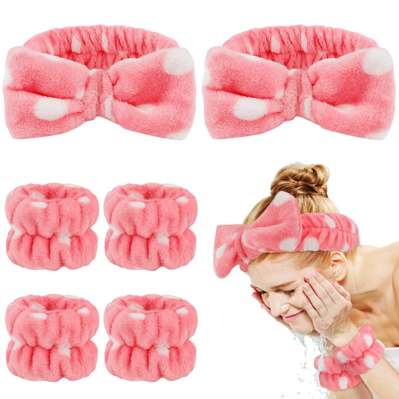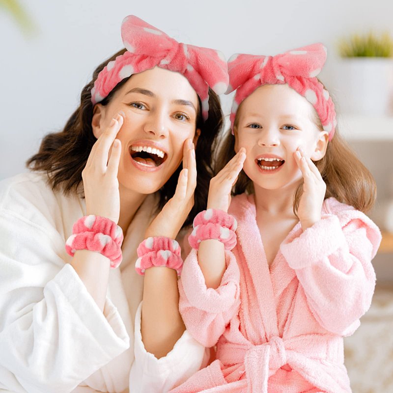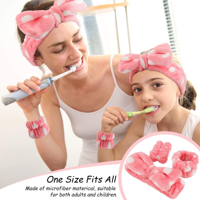 "【Spa Headbands & Wristbands Set】You will receive 2* shower headbands and 4* matching wristbands. A practical combination can meet your daily washing and replacement demands, you can also share it with your friends or families. 【Skincare Headband With Bow】Adorable bowtie is designed on the top of makeup headband, which makes you extraordinary sweet and cute. The fluffy headband works effectively to keep your hair during your cleansing process, providing comfort during your skin care routine. With nice elasticity to fit most people's head. 【Absorbent Wristband】Our towel wristbands for washing face are practical in daily use, preventing liquids from spreading down your arms, giving you snug enjoyment. 【Soft & Comfortable】The cosmetic hairband is made of microfiber fleece, double-layered high-quality coral velvet, extremely soft, cushy, adorable, intimate for your skin. 【Wide Occasions】The spa stuff for women are functional for washing face, makeup, mask routine, yoga, taking shower, birthday spa party and sleepover party. Also as Christmas stocking stuffers for girls, party favors for girls."