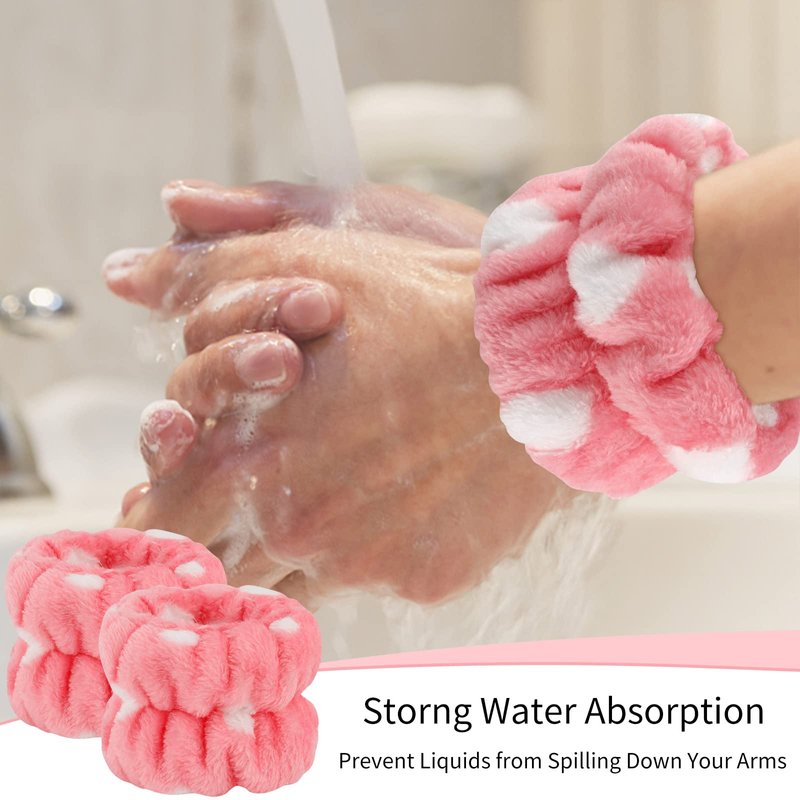 - [Absorbent Wristband] They're great for keeping water from spreading and spilling down your arms while washing, and a comfortable towel wristband prevents hair from falling in front of your face and provides a barrier to keep your hair dry while washing your face. Our towel wristbands for washing your face are useful in everyday life, preventing liquids from spreading down your arms and providing you with snug enjoyment.