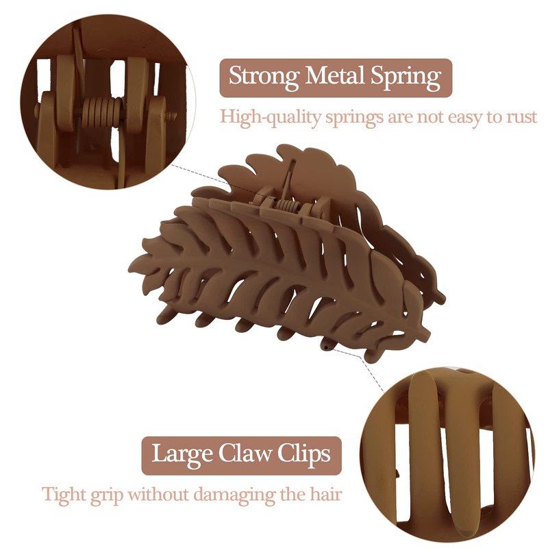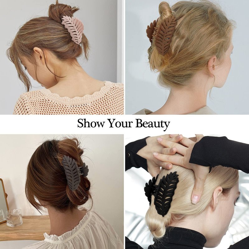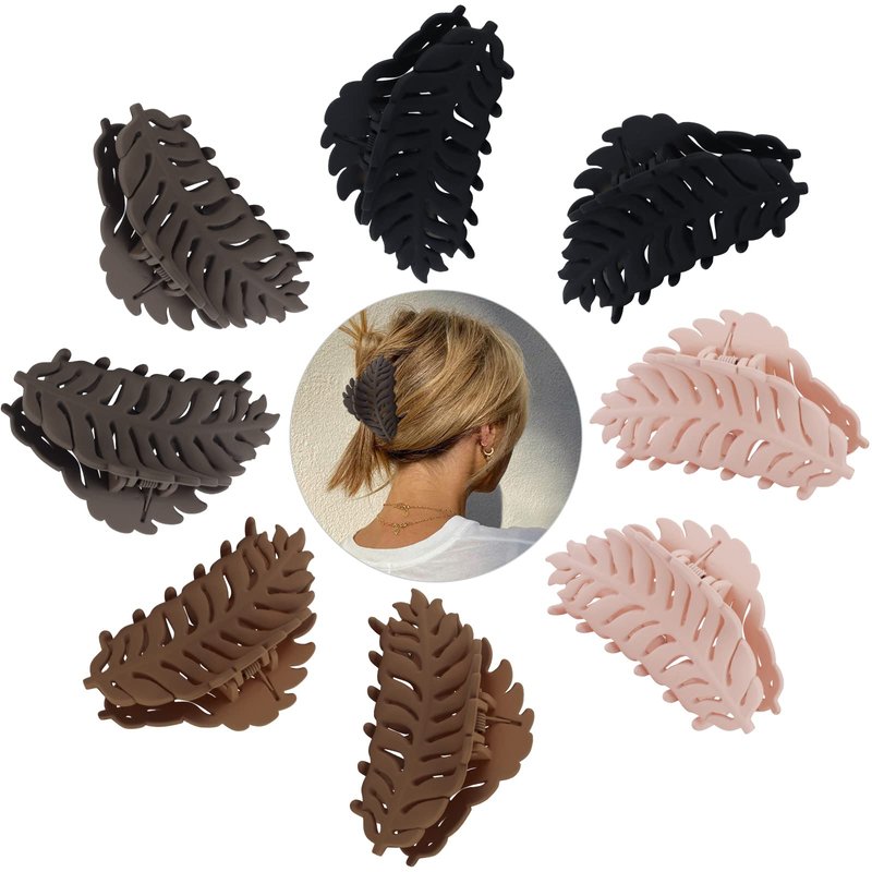 - [Product Specification]:Package includ 8 leaf hair clips in 4 neutral colors, beige, brown, dark coffee and black. Each hair claw clips is 3.7 inch, suitable for thin hair. They are compact, elegant and practical, easy to carry and use.