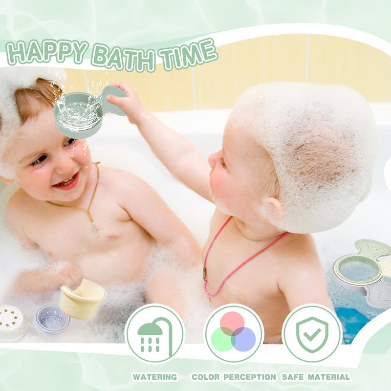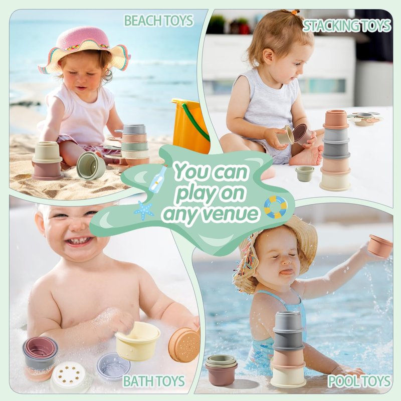 - Versatile Use: Unique holes in the bottom for pouring and water play at bath time. Compact and lightweight, this set is good for use in the bathtub, pool, water table or even at the beach. Our stacking cup toy set presents endless play opportunities!