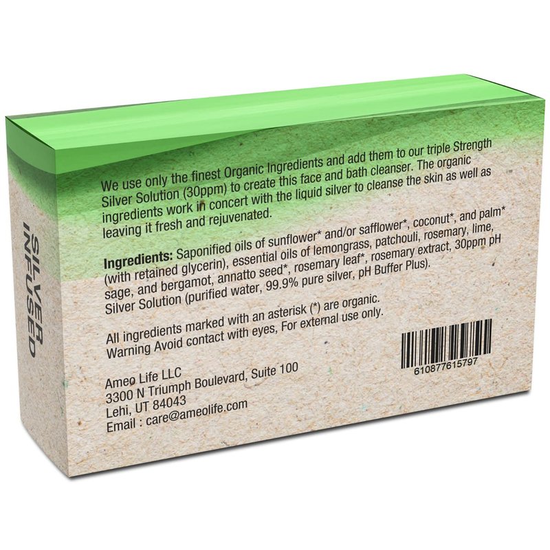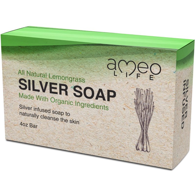 Ameo Life Lemongrass Silver Soap with 30 ppm Silver - Naturally Cleanses the Skin, 4 oz Colloidal Silver Soap Bar for Women and Men